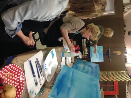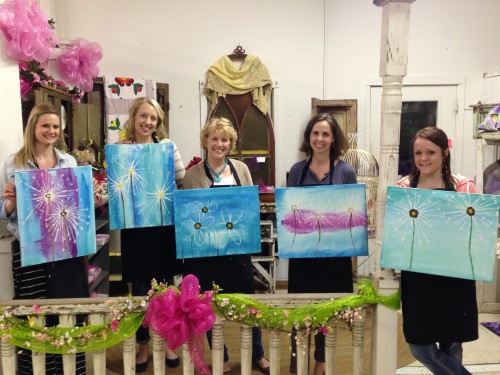 The evening was so much fun. Our fearless leader, Kendra, taught us how to make an abstract painting of a spring flower. She was so encouraging and patient with our novice group!