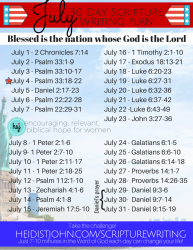 Happy July! Happy Scripture Writing! I hope you have a wonderful month, daily walking with the Lord.