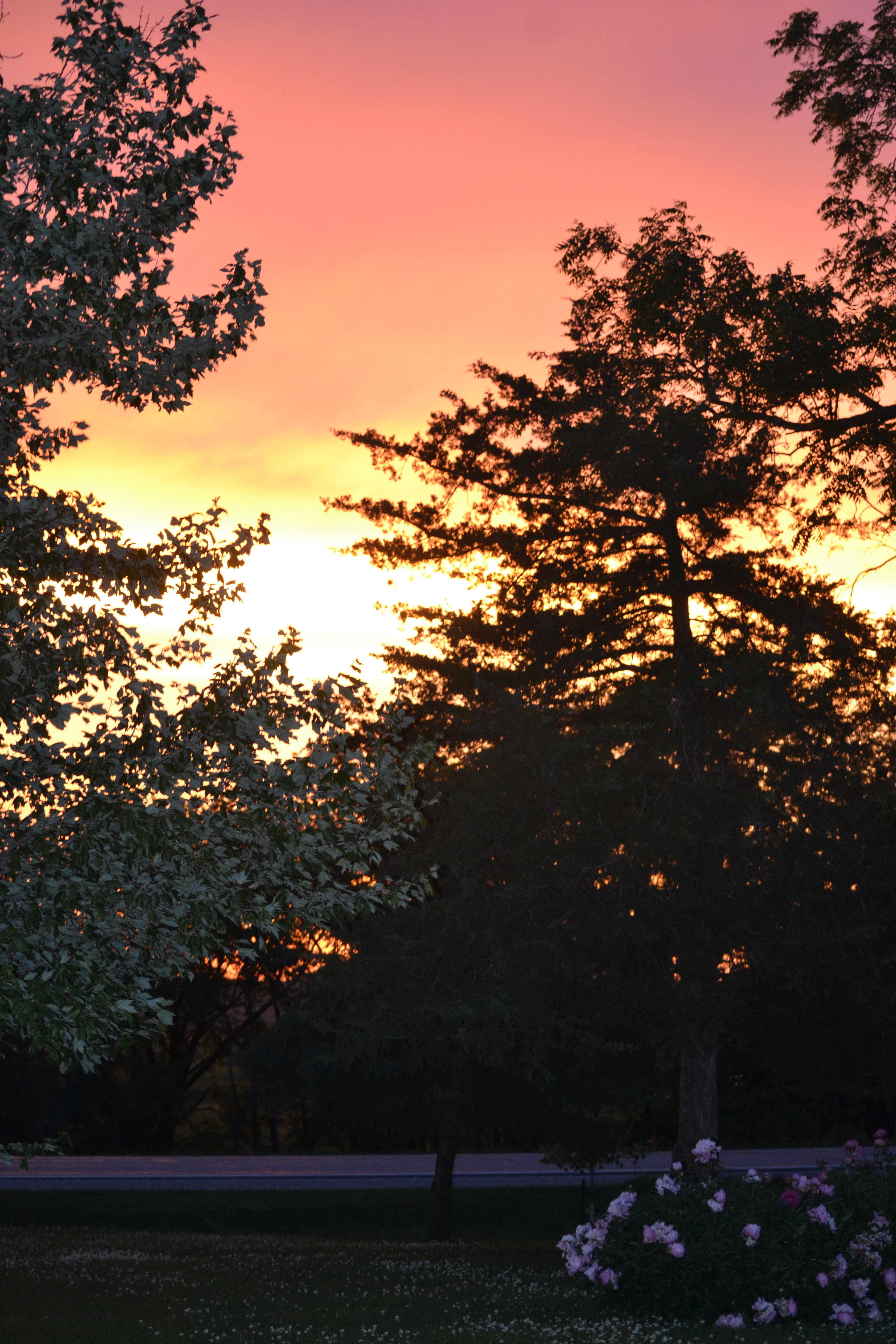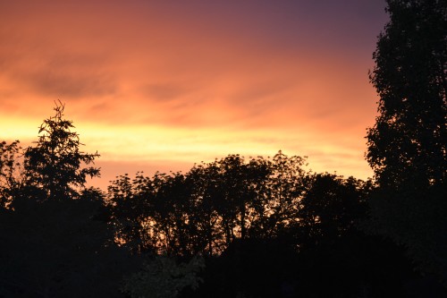 The sunset on a rather stormy night last week. Had to run and fetch my camera as the western sky was full of pink, yellow and orange with the black lacy trees as a front drop.