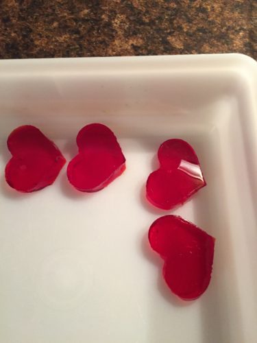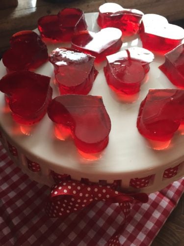 Maybe you aren’t a baker and prefer not to cook. I have a fun little snack item for you that no one will pass up. Everyone loves a heart jiggling in your mouth. Dig out a heart cookie cutter or grab one at the store today, along with some JELL-O or gelatin and make a few of these little sweeties. They really do lighten the mood and place a smile on a face, whether they be old or young.