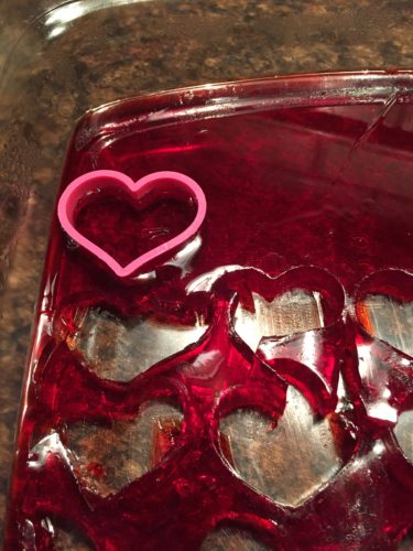 - Use a heart cookie cutter and cut out hearts. Refrigerate until serving.