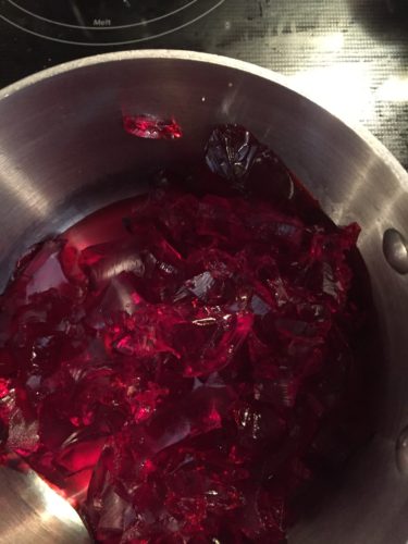 - Place gelatin in bowl. Add boiling water (or apple juice) dissolve.