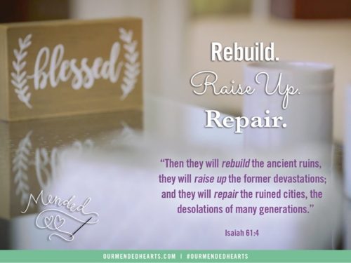 Great questions. We believe that because often mothers and daughters can be so different (just like any two children in the household from the same family!) that we can clash over our choices, and our differences can drive us apart rather than closer together. If there was ever any lack of love or attention to a daughter, she probably feels like there is an invisible wall between her and her mom. Or a mom might feel like how she handled her daughter, even to the best she could at the time, hasn’t been enough and she feels frustrated not only in her relationship with her daughter but also at how her daughter is leading her life. We see that God intends for us to break down walls and the devastation that has come between us and to rebuild! Just like the verse that’s the basis for our book Mended, Isaiah 58:12: “Your people will rebuild the ancient ruins and will raise up the age-old foundations; you will be called Repairer of Broken Walls, Restorer of Streets with Dwellings.”