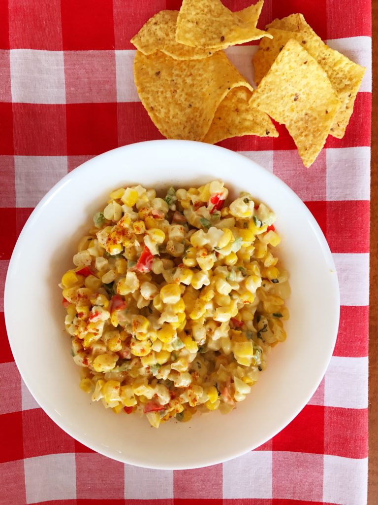 Mexican Street Corn…ever had it? It ranks right up there with Pommes Frittes (French fries sold by German street vendors). Both delicious, both slathered in mayo and a sprinkle of paprika. Oh, the joys of international travel. But…what do you do when you can’t just hop a plane to Mexico for some fresh street corn? Well, my friends – you make this delicious Mexican Street Corn Salad or Dip, whichever you prefer. Scoop it up with some tortilla chips or eat it plain with a spoon. Perfect for today – Cinco De Mayo!