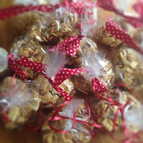 My mom started making Chex Caramel Crunch many years ago, and our family requests it every year at Christmas time. We make it for our neighbors, for our Sunday school teachers, for the garbage man, for ourselves…. you get the idea.