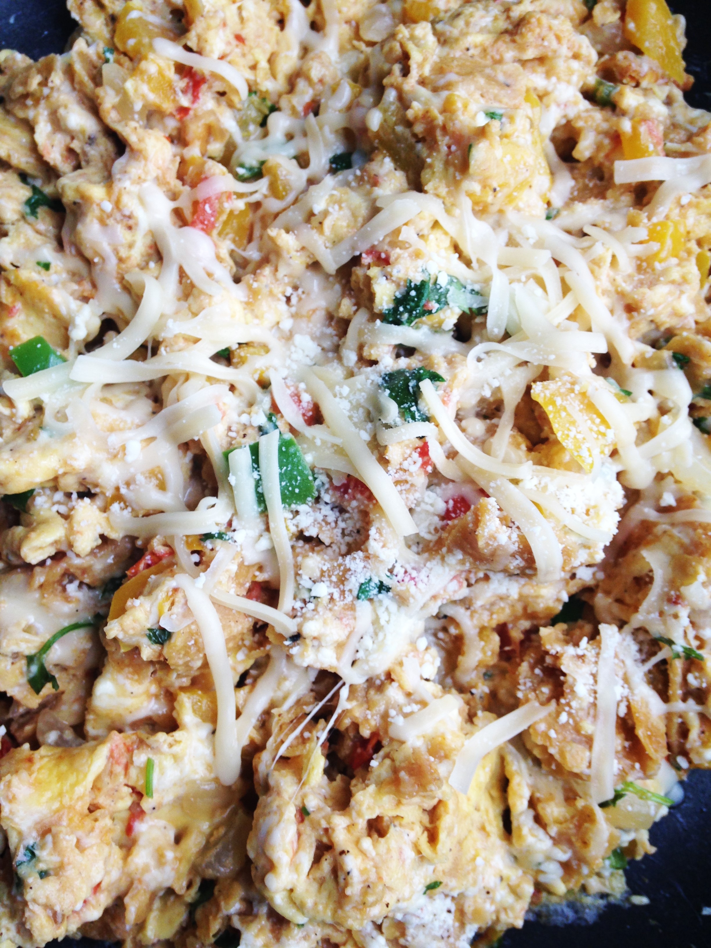 - When the eggs are cooked, add the cheese and cilantro (if using).