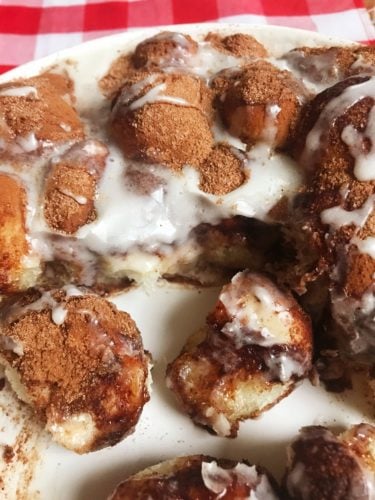 - Combine glaze mixture and mix well. Drizzle over mini cinnamon roll bites and enjoy!