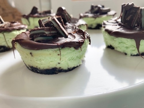 My husband is not really a mint person, so I’m always looking for another to enjoy my mint satisfaction with. I found this recipe for these cute little mini cheesecakes that seemed perfect for an individualized portion, covid friendly, and a birthday party dessert for my sweet friend whom enjoys anything mint as much as I do. With St. Patrick’s day coming up, I may just have to make them again.