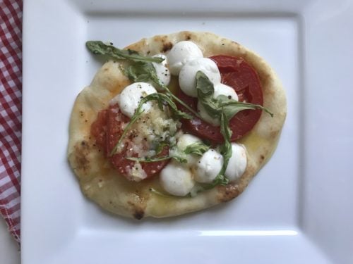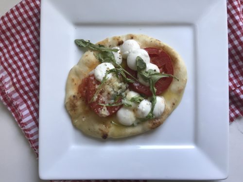 Fareway now carries Naan as does Costco. Costco has a large pack of about ten mini – Naans. I love this because they are so easy to heat up (about 2-3 minutes in the oven), and then just throw on favorite toppings. We’ve been doing this a lot this summer. So simple so easy.
