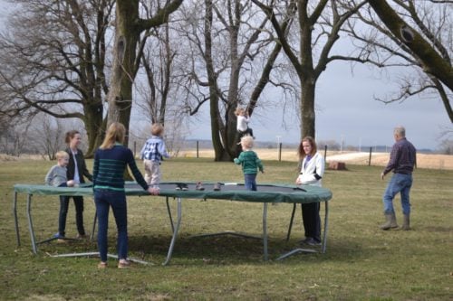 After dinner we headed outside for some fun and games. The jacket-weather was just about right….except for a little mud underneath due to a bit of rain through the night. We played flag football, shot some hoops, took a 4-wheeler ride, rode bikes, played in the sand pile and did plenty of jumping and swinging. There was NEVER a dull moment and we never tire of it!