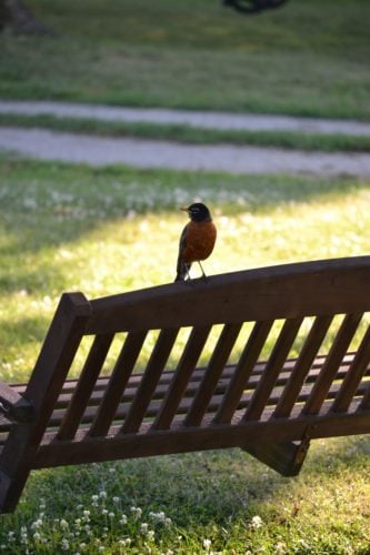 And what makes up this resounding symphony as I take in God’s Holy Word? Well, I’ll tell you just of few of the members of this rural orchestra: the mooing cattle in the pasture to the east; the quiet dog barking intermittently about 1/2 mi west; robins chirping….many robins :); a bright orange and black Oriole solos every few minutes; royal cardinals resound and little wrens chatter (and sometimes scolds, letting me know I’m way too close to their families); the red-winged black bird with a pestering song.