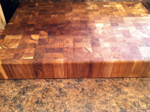 Mr. Farmer has always told me, “ya gotta have the right tools for the job”. I’ve been wanting a great big cutting board for some time now. I have many….in all shapes and sizes, and I use them constantly. Some are too little….some too flimsy….some too…well……..aggravating because they slip and they slide. Annoying. You know what I mean. There are 21″ between my stove and sink, My dream was to have a chopping block installed between the two when we remodeled our kitchen a few years ago, but because of the sink installation, the carpenters said it just wouldn’t work the best. I found this thick and pretty one the other day as I was shopping. It couldn’t be more perfect for this spot! It’s 2 ” thick and 20″ long, so it doesn’t slide around when the sous chef (me!) is chopping, slicing, and dicing. This wonderful tool has truly enriched my love for cooking!