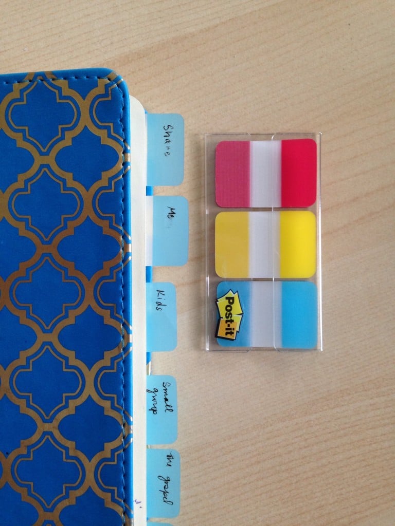 Aren’t there so many things to pray for in life? There are family, and friends, and missionaries, and our church, and our nation, and …. the list goes on and on. So, I just make different sections for the main areas in my life and put a tab on each of those sections. Some years I have just a spiral bound notebook with some Post-it Notes, but this year I found this pretty notebook and received these awesome sticky tabs for Christmas (thanks, Dad!).