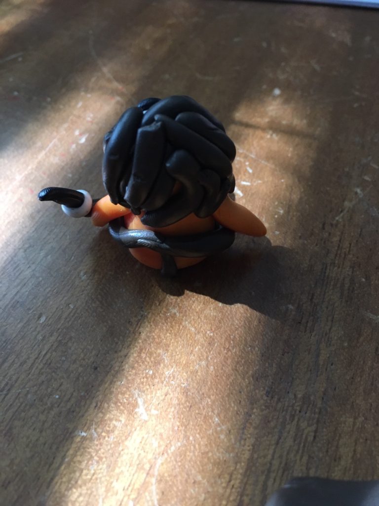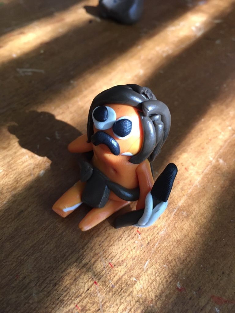 P.S. While I read to the kids, sometimes they like to play with clay and make something from the story. Addison made an Aucu tribe member. Note his spear and loin cloth. These kids crack me up.