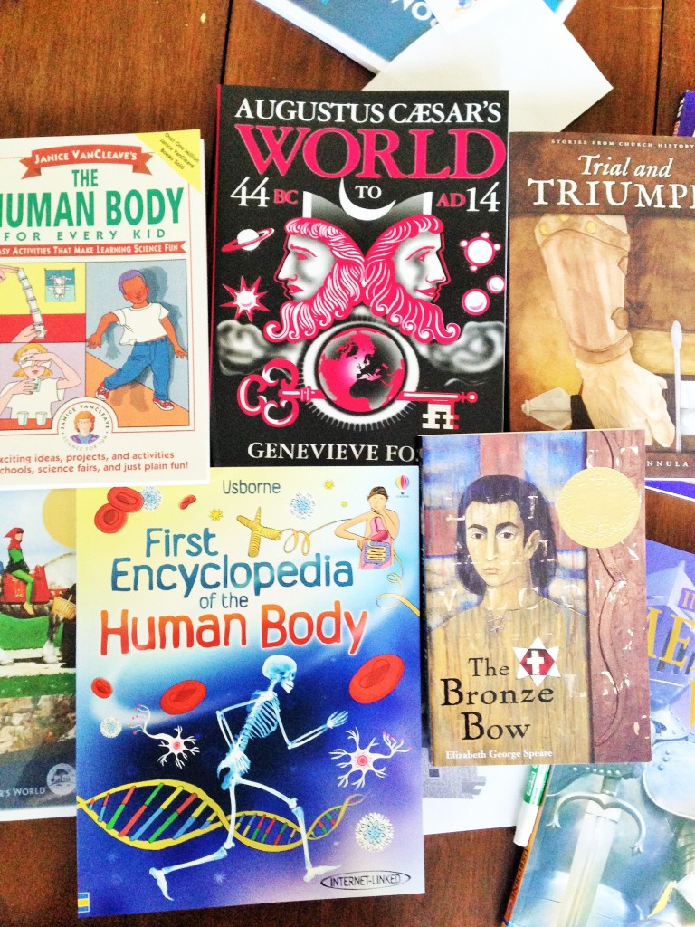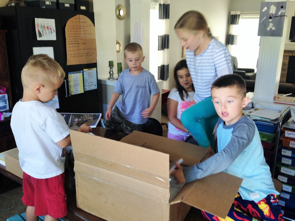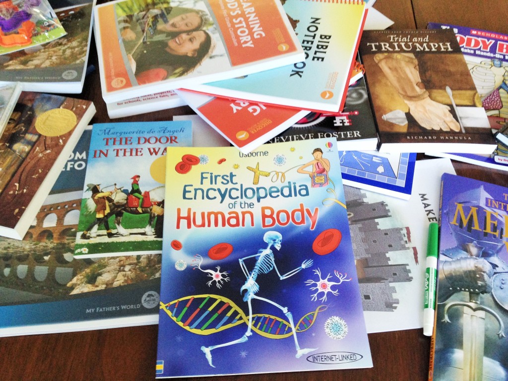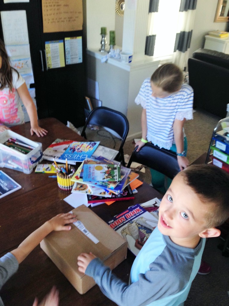I quickly brought the boxes inside and sliced open the packaging tape. Sure enough, each box was packed to the top with glossy, shiny new books. The kids quickly started pulling them out. “The Human Body!! This looks interesting.” We’re gonna learn how to play chess!” We get to build a castle.” “What do you think the Dangerous Journey will be about?” So many questions and thoughts and feelings… So much anticipation.