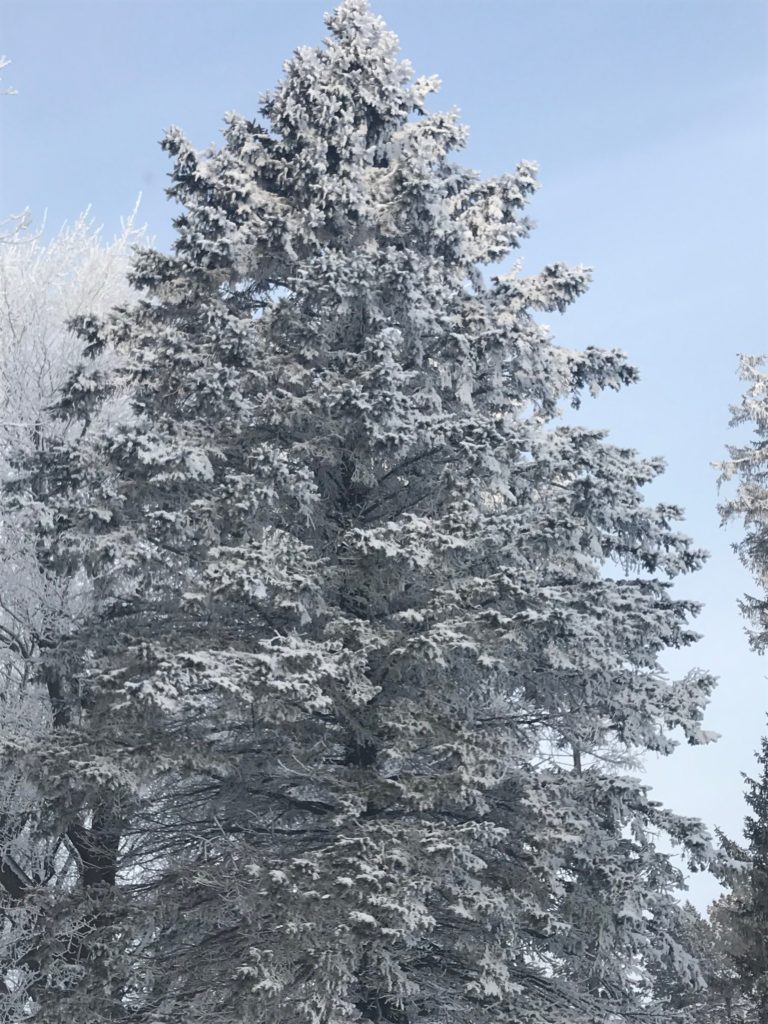 Mounds of snow, frothy trees covered in frost – the sun peaking through the morning fog