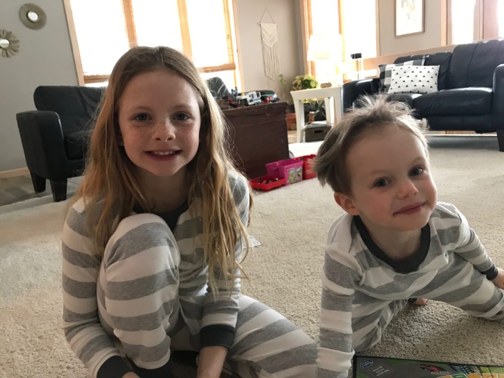 Inside, the kiddos have already begun the day with pjs, legos, and games