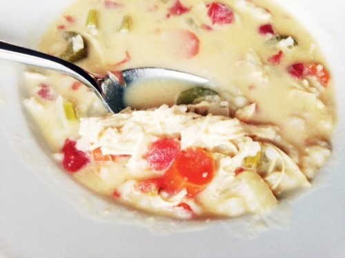 Mix your ingredients together and let simmer, the prep time on this yummy soup is minimal…esp if you use leftover chicken!