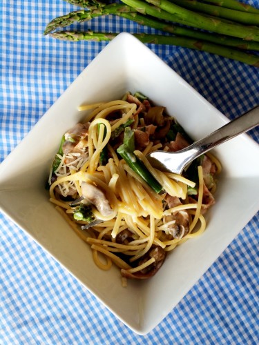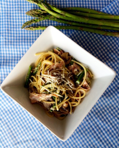 A few years ago, I was searching the internet for some new asparagus recipes and I came across a pasta recipe that included asparagus….I made a few adjustments to the recipe, we gave it a try, we loved it, and it is now on our menu rotation when we are able to find fresh asparagus.