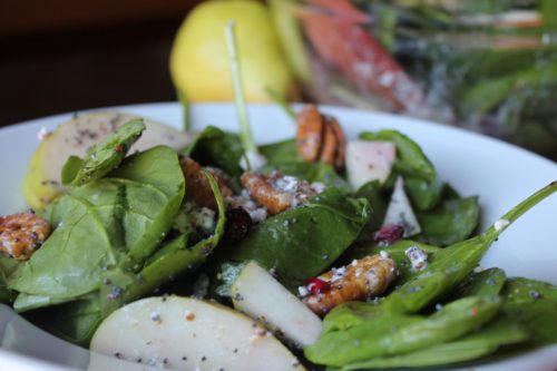 As much as I love all of the dishes that go along with Thanksgiving – the mashed potatoes, the gravy, the green bean casserole, the sweet potato pie, the marshmallow fruit salad…I eagerly look forward to a fresh salad to follow. Comfort food hits the spot, undoubtedly; however, the fresh fruits and vegetables can really strike a chord with me as well. Hopefully they balance each other out, right?