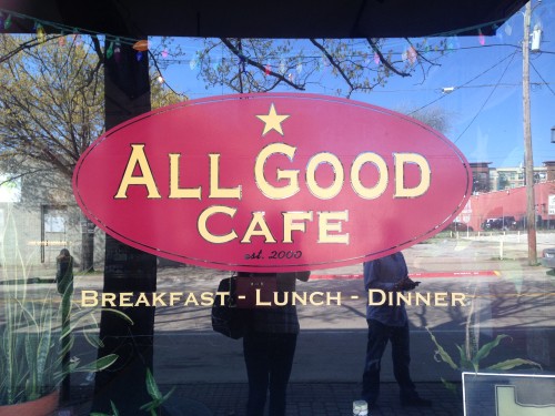 Check out this place: The Truck Yard, complete with a tree house, eat in truck beds, and lined with food trucks. We had never seen anything like it. It was like a complete town of food trucks, picnic tables, re-purposed EVERYTHING, and most importantly tons of families hanging out and visiting together. I took this picture from the tree house (where we were eating our sandwiches!!)