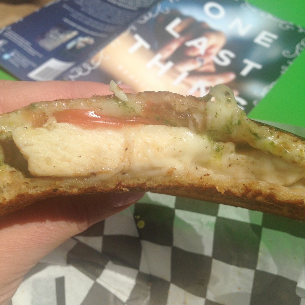 We stayed downtown, and one day for lunch I walked to Klyde Warren Park. Full of families, business people, food trucks, a sprinkler park, and lots of shady places to eat, it was fabulous. Here I sat and read and ate one of the most delicious grilled cheese sandwiches of my life. It had chicken, tomato, basil, and mozzarella, and it was heavenly.