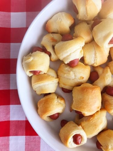 A two ingredient appetizer that pleases both kids and adults alike? Sign me up! This pigs in a blanket recipe is nothing new..it’s been around as long as I can recall. However, this time of year between busy schedules and football games this is a dish I reach for. Sometimes it’s an appetizer, sometimes it’s the main attraction at dinner.