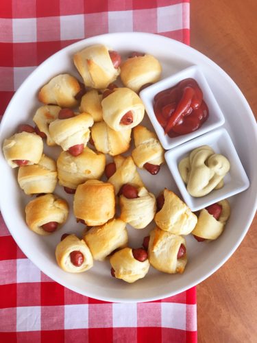 Serve it up with some ketchup and mustard to dip. If you are feeling extra fancy you could brush the tops with some butter and sprinkle with sea salt before baking or even sprinkle some shredded cheese on top too!