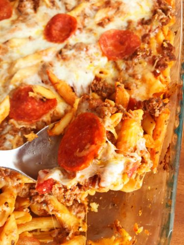A few weeks ago I decided to change up pizza night a little. Still go with the same general theme but instead serve a pizza pasta bake. It’s a cross between a layered lasagna and pizza. Yum!