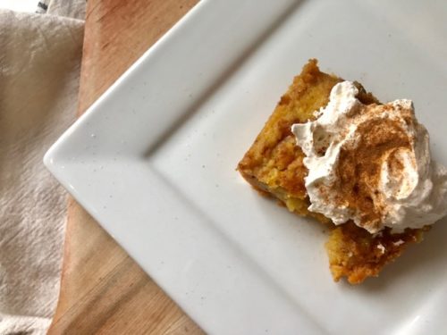 I was recently introduced to this sweet, buttery, pumpkin dessert, and I was so relieved to find out that it’s a pretty simple to make! It would go wonderfully with a Thanksgiving menu, but would also be a comforting breakfast item over a slow morning. Either way, we’ll be making this one again!