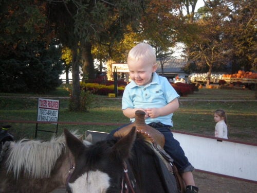 Once we arrive, it is a blur of kids running among the pumpkins, little ones peeking over the mums, feeding the farm animals and riding the horses with the cameras flashing.