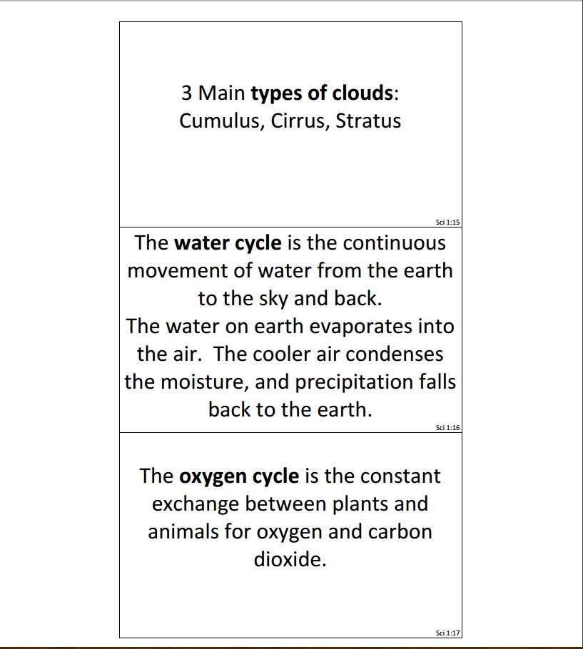 And the second part of the book contains 48(!) pages of the actual memory cards that she has created for her family including the topics of geography, math, grammar, science, and more. These cards can be used in a lot of different ways such as including them in notebooks or lapbooks. I plan to cut them out and keep them in a recipe card box on the kitchen table. They will be a great conversation starters as we each lunch together.