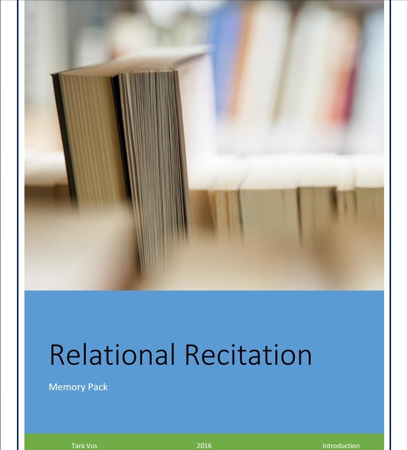 Tara Vos, a friend, homeschool mom of five kiddos, and fellow Iowan has recently written Relational Recitation, an ebook and awesome memorization resource. In the book she describes the frustration she felt when she knew that she wanted to incorporate memory work into her family’s daily routine. She writes,