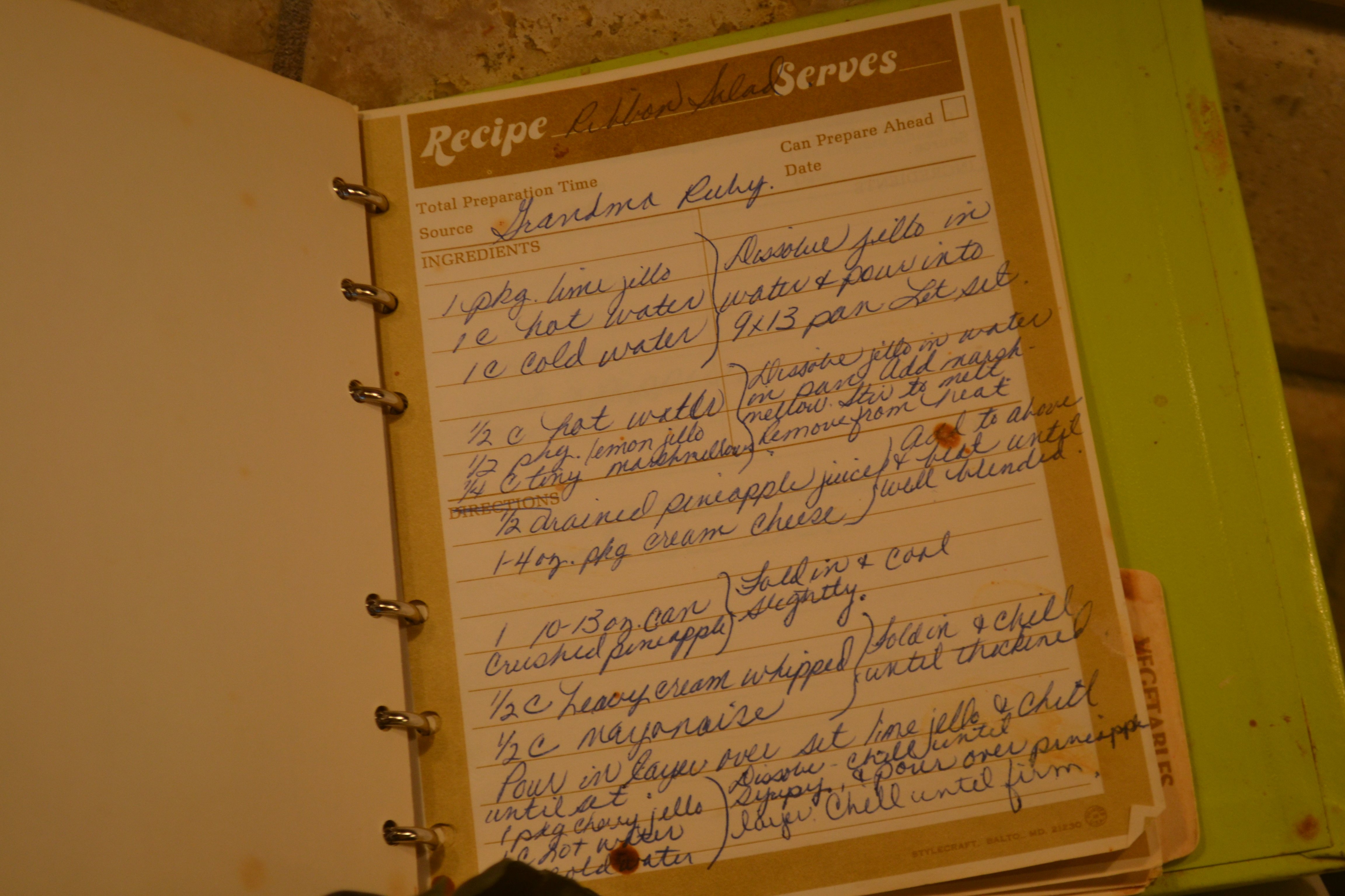 Would it be Easter without Grandma Ruby’s Ribbon Salad? Probably not. I think I like it for the memories just as much as for the taste. It takes a little time to make—it’s worth the effort. The grandchildren are beginning to enjoy the colorful spring salad, too. Anna gulped it right down! Maybe she’ll call it Grandma Denise’s Easter Salad one day.