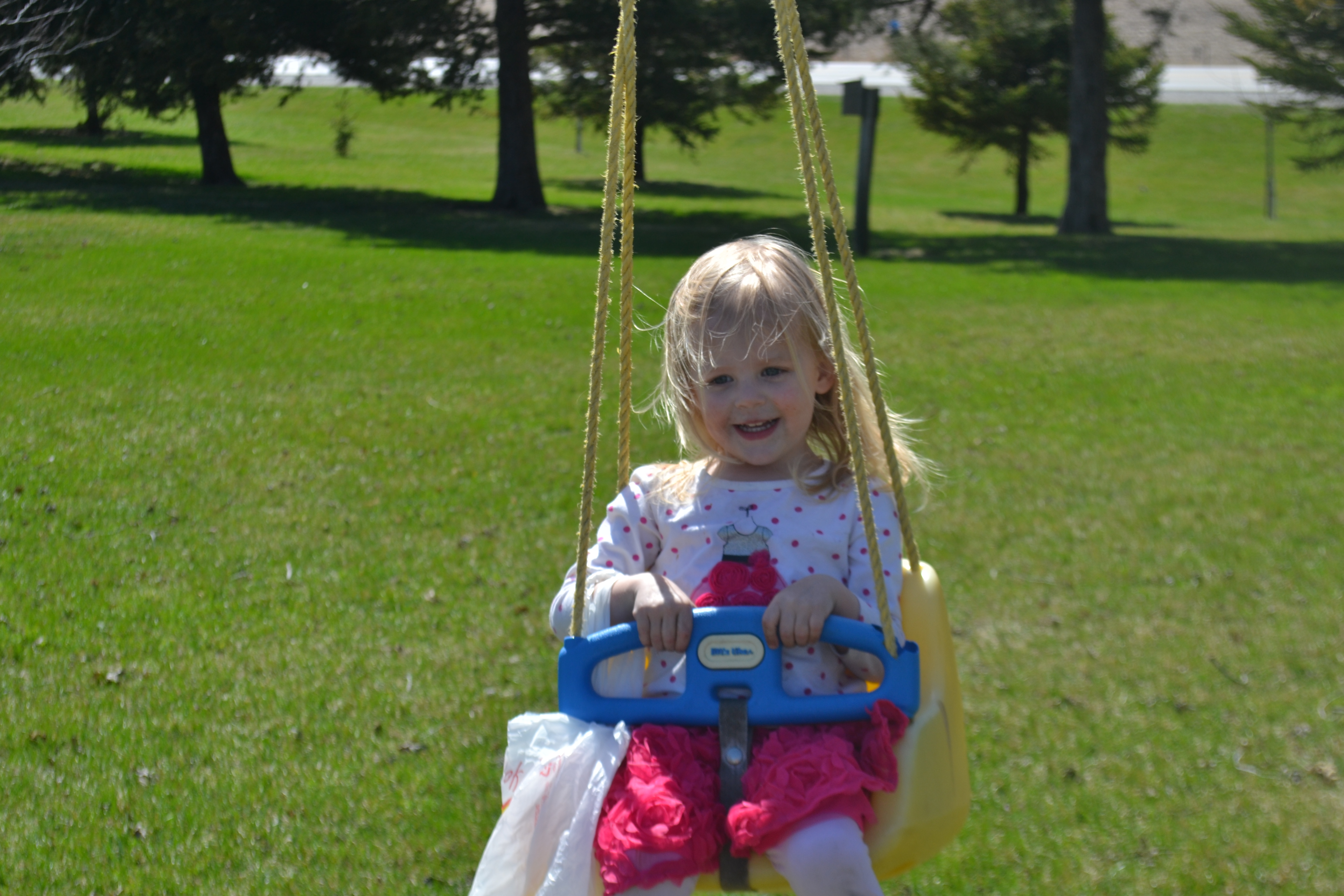 Anna stopped for a “not toooo high” swing ride with her bag of eggs. 🙂 …….and