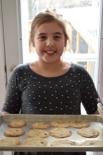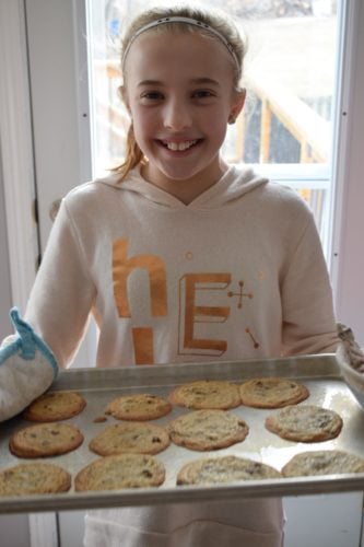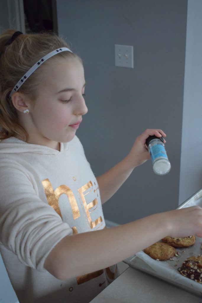 Recently my girls asked if they could try a new recipe. Everyone in our house loves their chocolate chip cookies, but they wanted to try something a little more fancy. Since we all love the salty and sweet combo around here, they decided to give these a try. (Side note: How on earth have they gotten old enough to make cookies themselves?! Bittersweet!)