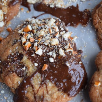 Sea Salt and Pretzel Dipped Chocolate Chip Cookies