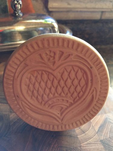 You can see in this picture I got them a little close. I used a biscuit cutter. Of course a stamped cookie cutter would have been ideal. (I’m realizing now as I write I could have used this lovely colonial heart stamp with a hand holder. Next time!)