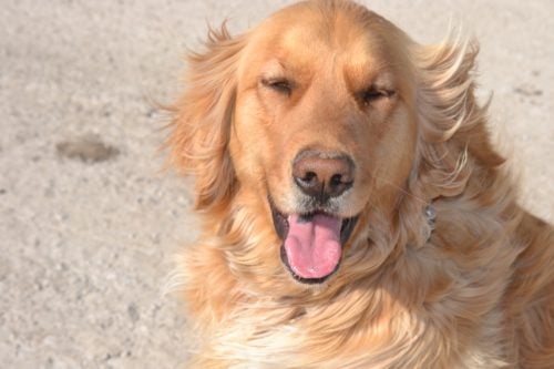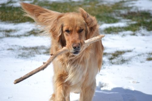 Maggie, our first Golden Retriever, has been a God-send. (Never thought I’d say that!!) She’s smart, she’s kind and she even talks. As a retriever, she LOVES to play catch. She waits at the door if she hears a noise, to invite us out to play. Believe it or not, she actually lines up her toys and a block of wood on the sidewalk in anticipation for a game. She talks to us in a high whine and she always sits on our feet and leans against us. For someone who isn’t pet crazy, she’s been my all-time favorite. Maggie makes everyone smile.