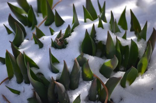 I do wonder if my tulips and hyacinths will ever bloom. This is the second time they’ve been covered up by snow.
