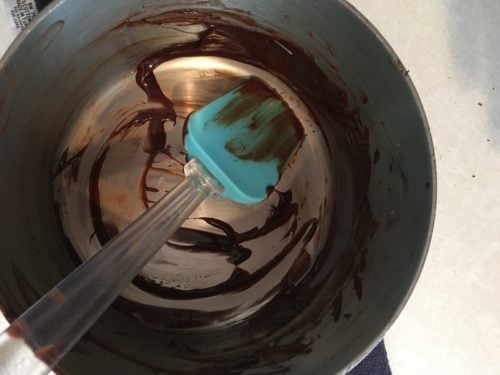 - For the filling: In a saucepan over medium heat, melt the chocolate. Stir continuously so the chocolate doesn't burn.