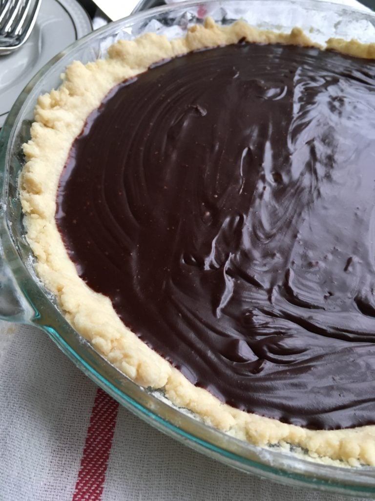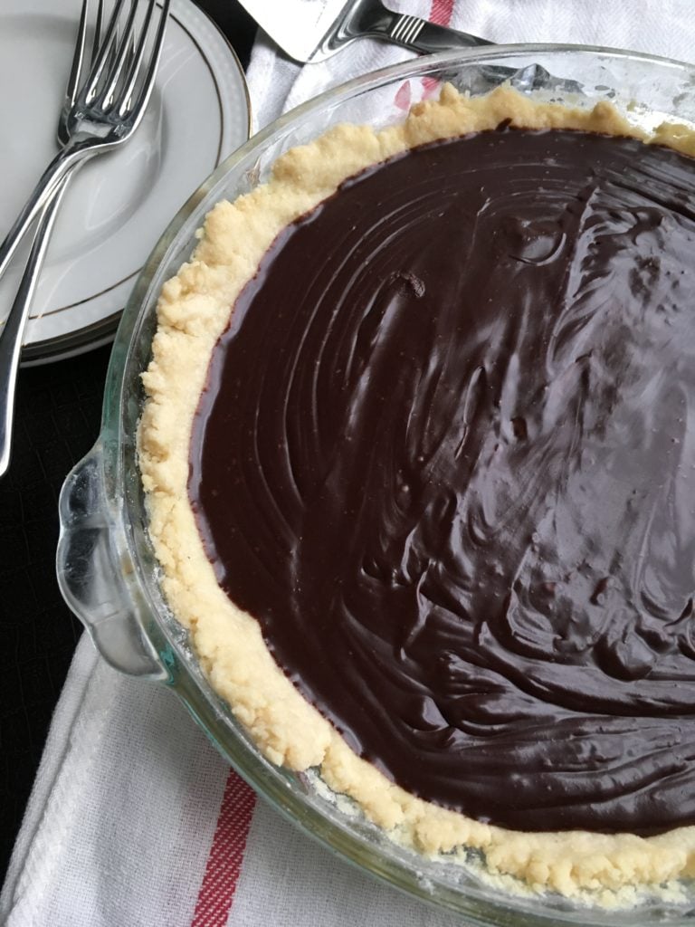 The filling for this tart only requires 3 ingredients: chocolate, butter, and cream (a winning combination, I must say!). Make sure to lick the pan and spatula clean to make dishes easier, of course.