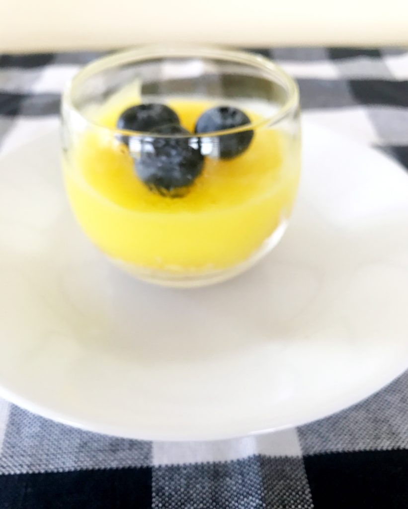 Simple, creamy and refreshing are three words I would use to describe this lemon dessert. Essentially it is just homemade lemon pudding (which is wonderful by itself) but adding some crushed graham crackers to the bottom of your serving dish and topping it with some fresh fruit make this dessert seem much more elegant. It lends itself well as a tea party treat, brunch side or after dinner dessert. A cool and refreshing lemon dessert for all these warm summer days.