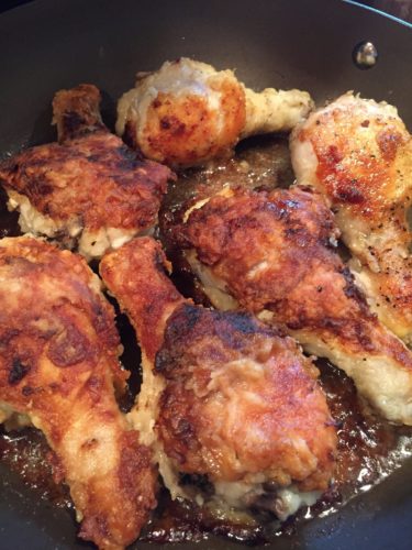 Sometimes I brown both sides then stick the chicken in the oven. This time I kept it on top of the stove and watched, giving both sides a good browning. This method takes a good hour to hour, 15 minutes.