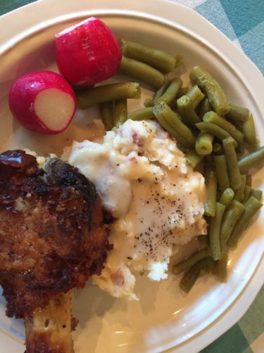 The meal was delicious! I’m not going to tell you how many drumsticks I had. I’m just not. And yes, there were more than firsts involved in the gravy, too. 🙂