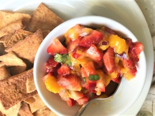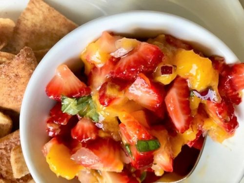 If you have time, try our homemade version of cinnamon and sugar chips – and another Fruit Salsa that can be eaten by the spoonful (no joke) 😉 Turn it up and add more heat with Strawberry and Jalapeno Salsa