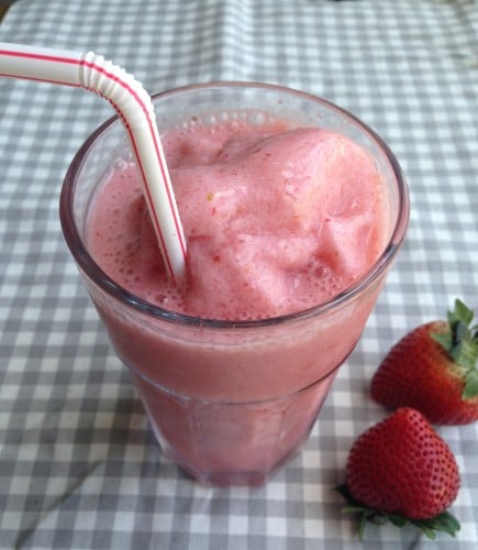 - Using a food processor, blend together the strawberries, peaches, and honey until almost smooth.