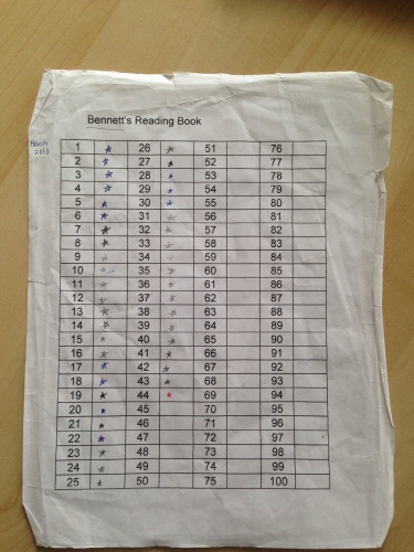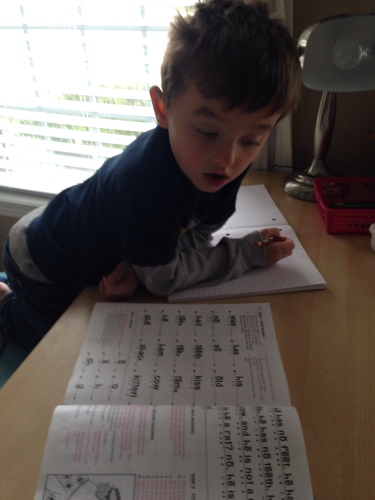 Bennett loves doing “my reading book” with me, and receiving a star next to the lesson number each day when he finishes.