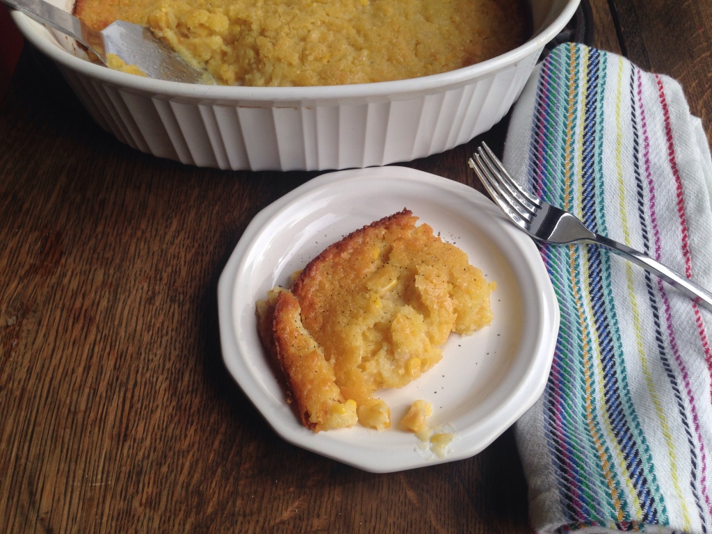 This corn casserole has been in the family for years. I think my Aunt Cary introduced it when I was a kid. It’s basically a cross between corn bread and creamed corn, and it’s absolutely wonderful.