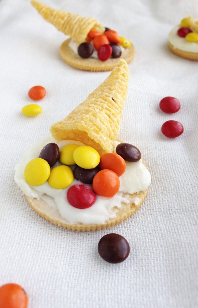 These Cornucopia Cookies are new this year. The kids and I made them last week, and they were fun and adorable. We might have to whip up another batch for Thanksgiving Day.